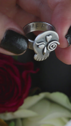 Der Amor Eterno Skull Ring ist ein aussergewöhnlicher Silberring, der die Seele von Amor Eterno – der Ewigen Liebe – verkörpert. Dieses einzigartige Schmuckstück steht für unvergängliche Verbundenheit und die Kraft einer Liebe, die über das Leben hinausreicht. Er ist eine Hommage an den mystischen mexikanischen Feiertag "DÍA DE LOS MUERTOS", zur Ehre der Verstorbenen.
